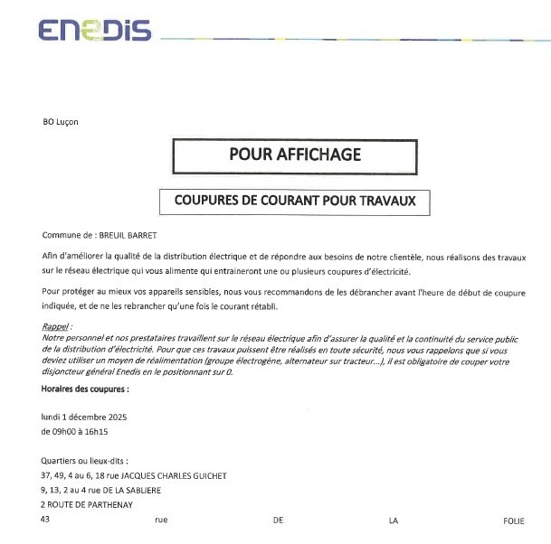 COUPURES DE COURANT POUR TRAVAUX - BR...
