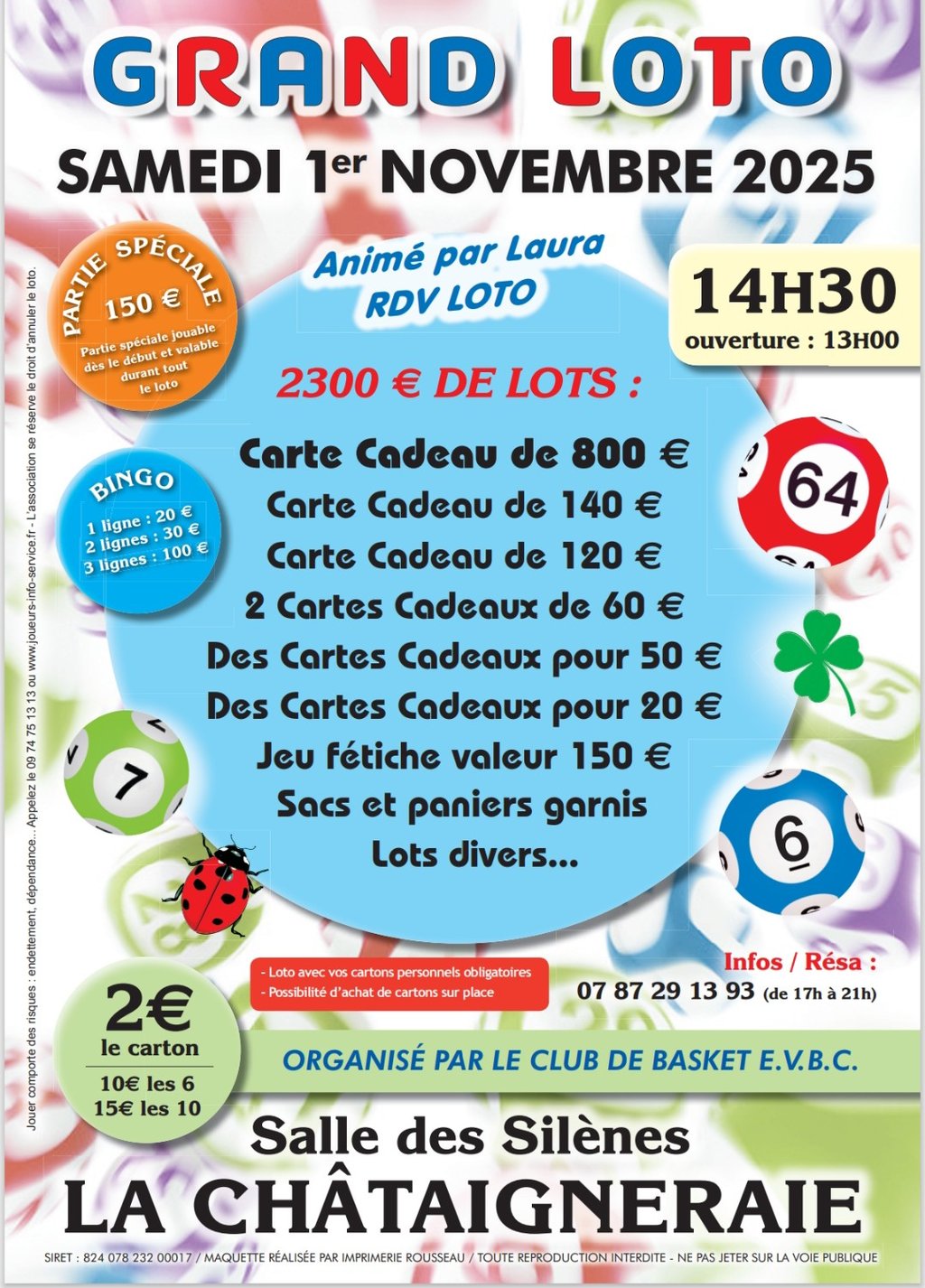 Le club de BASKET E.V.B.C est heureux de vous inviter à son traditionnel grand Loto du